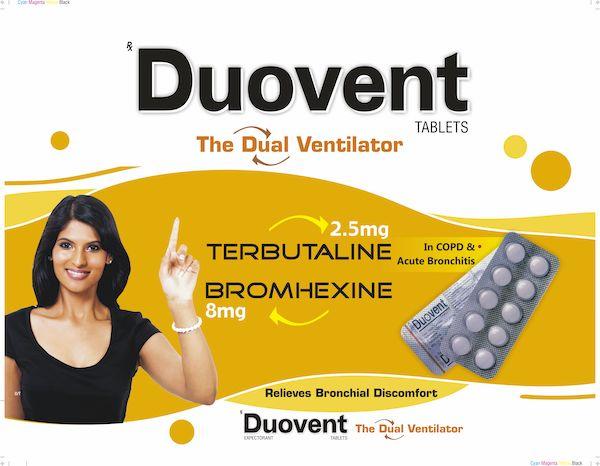 Duovent Expectorant is a dual ventilator with Terbutaline and Bromhexine for relieving bronchial discomfort. It clears ventilation, assures complete expectoration and relieves discomfort.